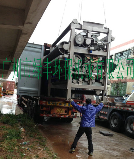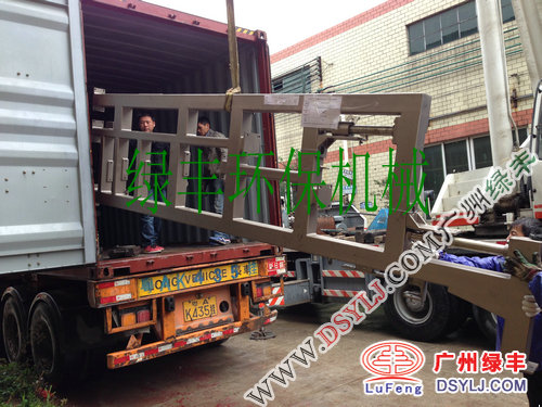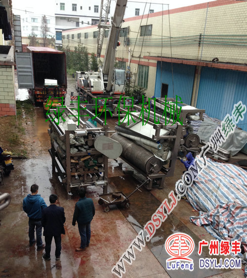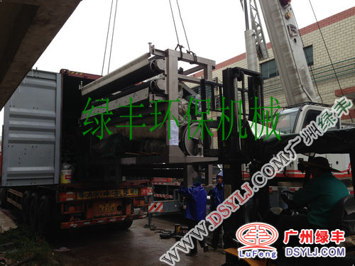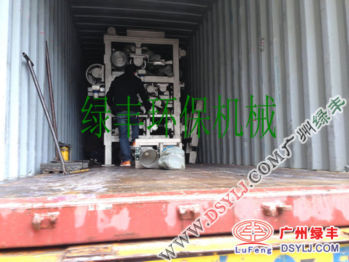 馬來西亞大型選礦廠選用綠豐公司3臺帶寬3米的分體式重型污泥脫水機(jī),機(jī)型:DYQN3000P1ZF-L,總長13.5M,下圖是出機(jī)裝柜現(xiàn)場準(zhǔn)備。