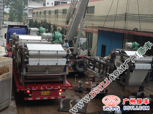國(guó)內(nèi)大型再生資源開發(fā)有限公司選用綠豐2臺(tái)帶式壓濾脫水機(jī),2臺(tái)帶式對(duì)輥壓渣機(jī)