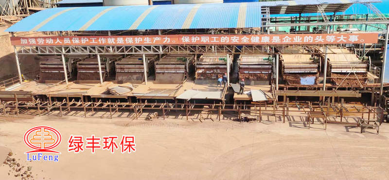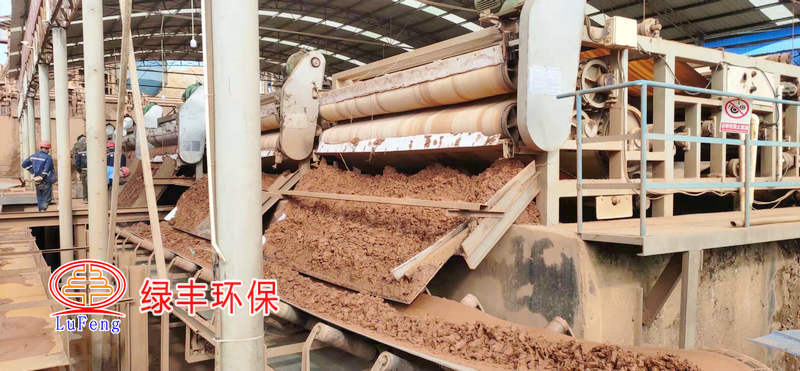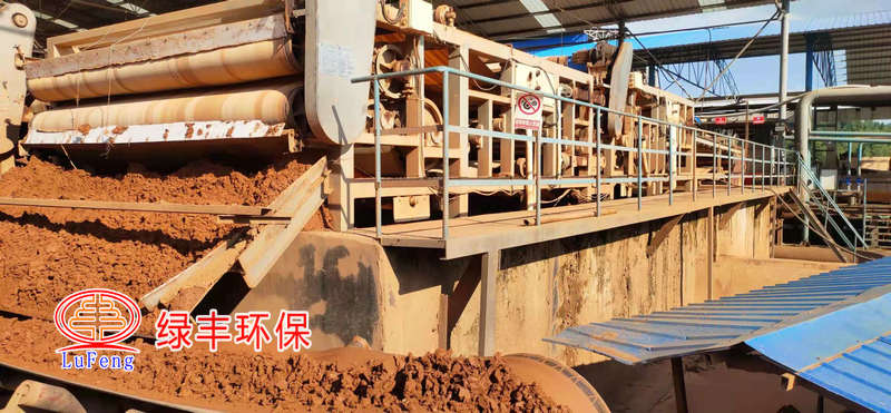 該現(xiàn)場選用綠豐新型多輥高速帶式脫水機,每小時處理量達200 m3/h ,18米長,4條濾帶+11條擠壓輥+2組對壓