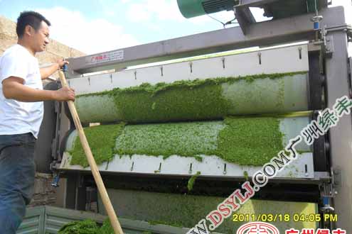 蔬菜脫水重型對輥壓渣機廣州綠豐機械現(xiàn)場蔬菜脫水圖例