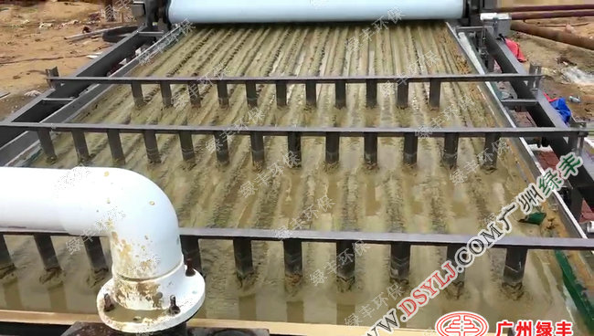 導(dǎo)入濾網(wǎng)滲出,泥漿經(jīng)過(guò)8-10米長(zhǎng)的重力脫水,泥漿水中大量自由水被充分濾除,此時(shí)泥漿流