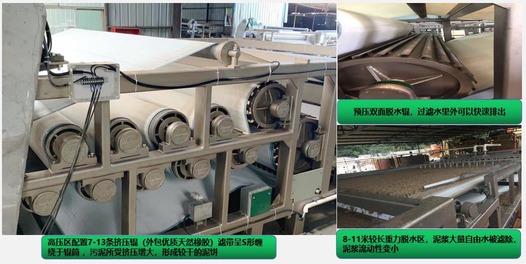 2.高壓區(qū)配置11條擠壓輥,特大雙面脫水輥,保證了較好的脫水效果;